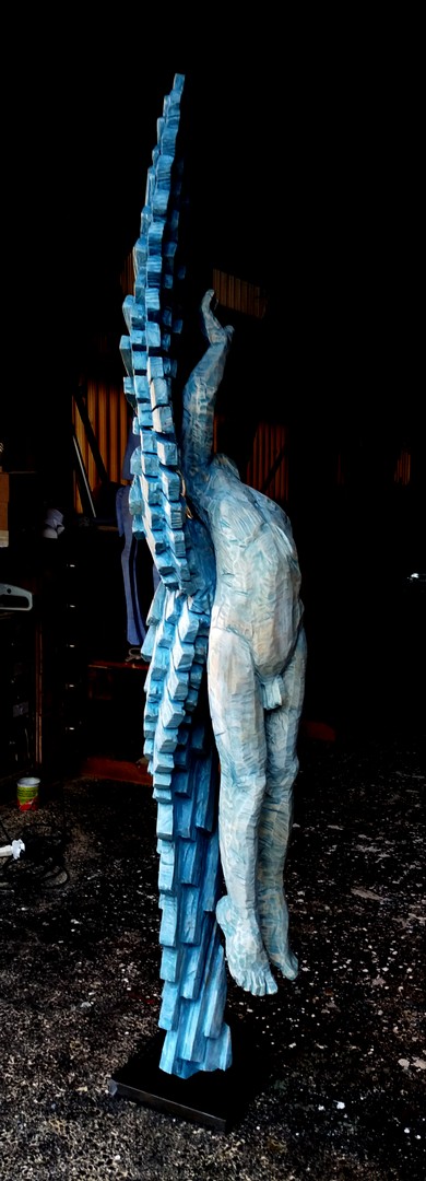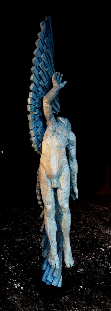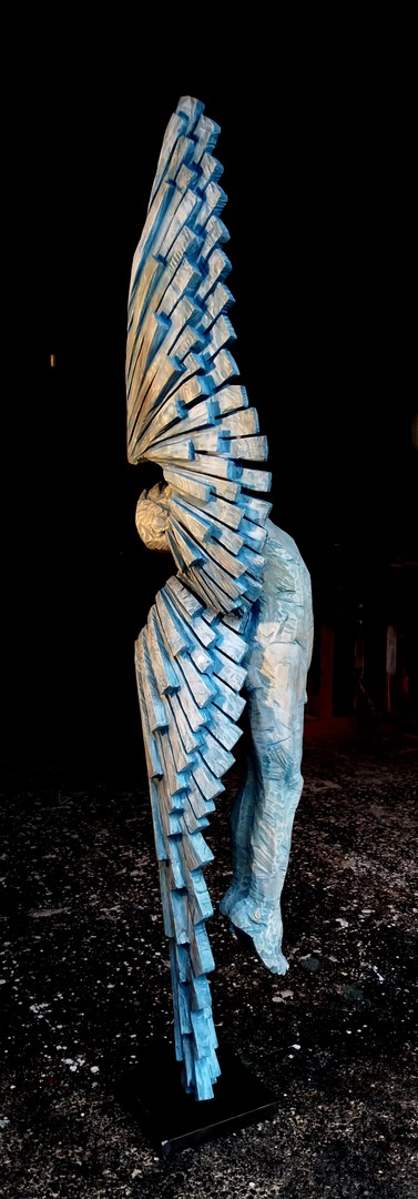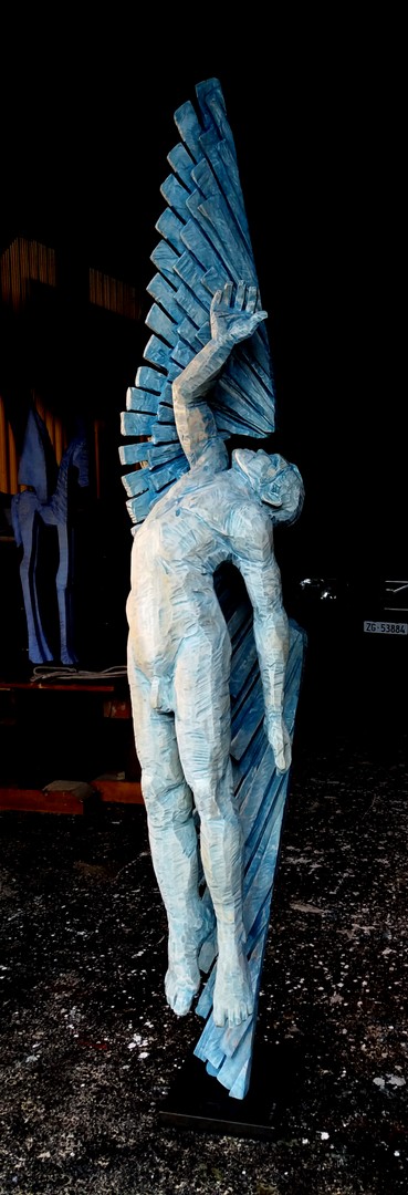 Ambivalenz aus, indem ein Teil dieser Skulptur noch oben strebt, während